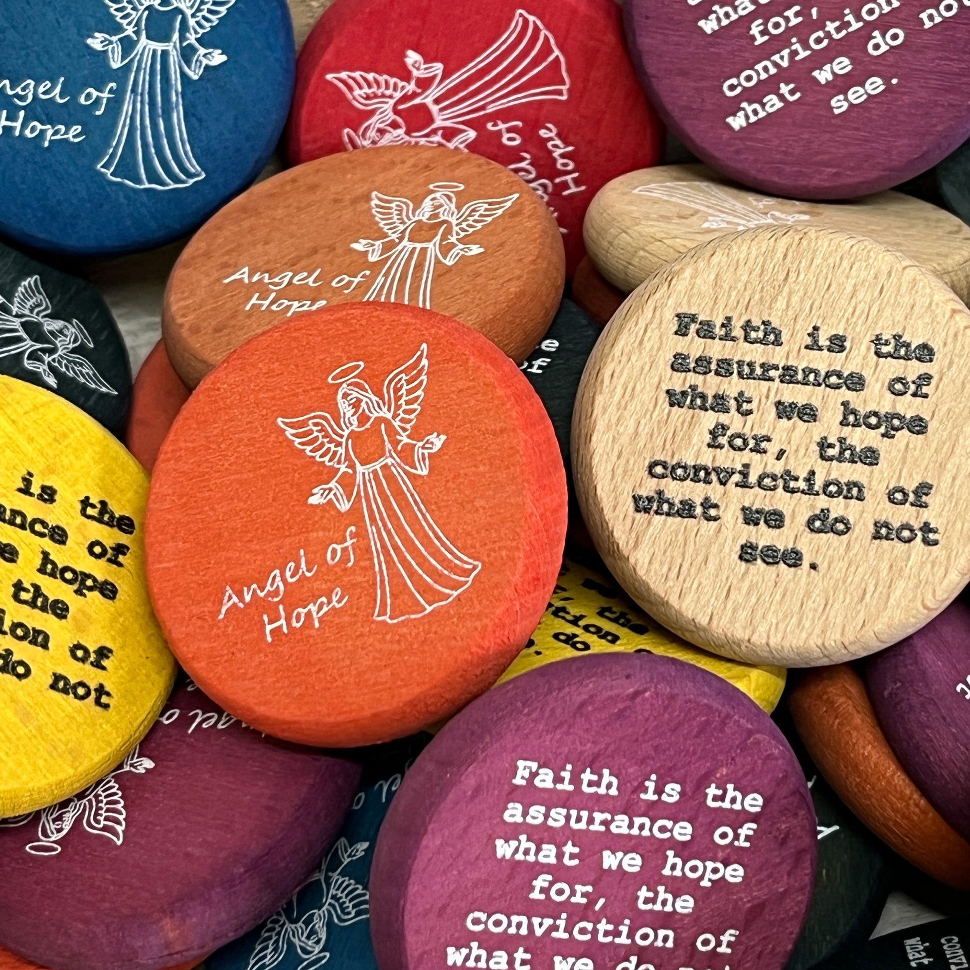 Front: Angel of Hope (angel) Back: Faith is the assurance of what we hope for, the conviction of what we do not see.
