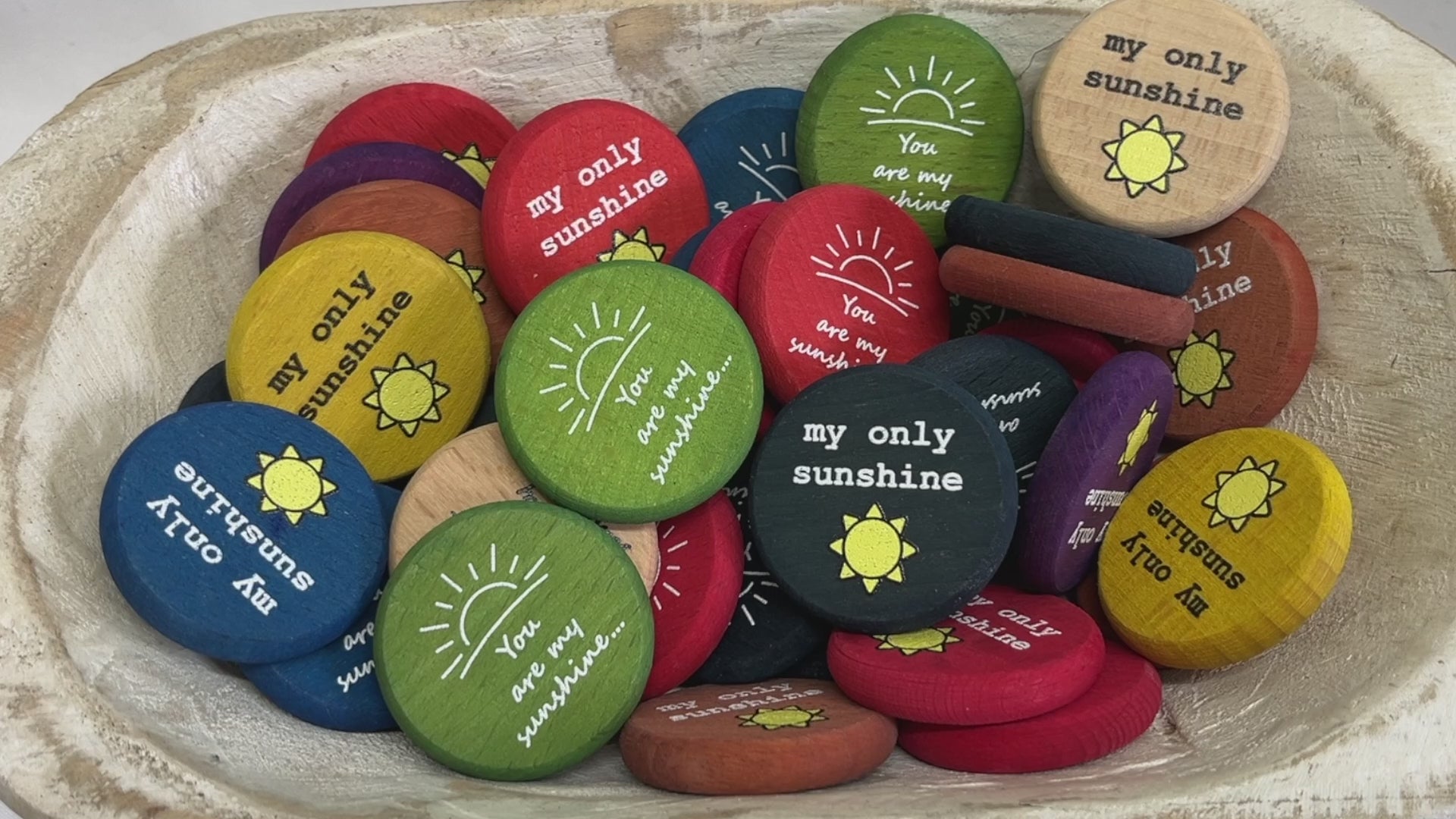 Inspirational Wood Coin Tokens measure approximately 1 1/2" in diameter and are 1/4" thick. Imprinted with inspirational and motivational words and imagery they come in a variety of colors and styles.