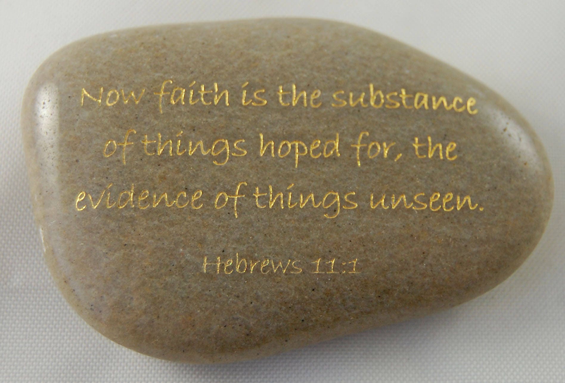 Now faith is the substance... Hebrews 11:1 Engraved Scripture River Rocks range in size from 1 1/2" - 3 1/2".
