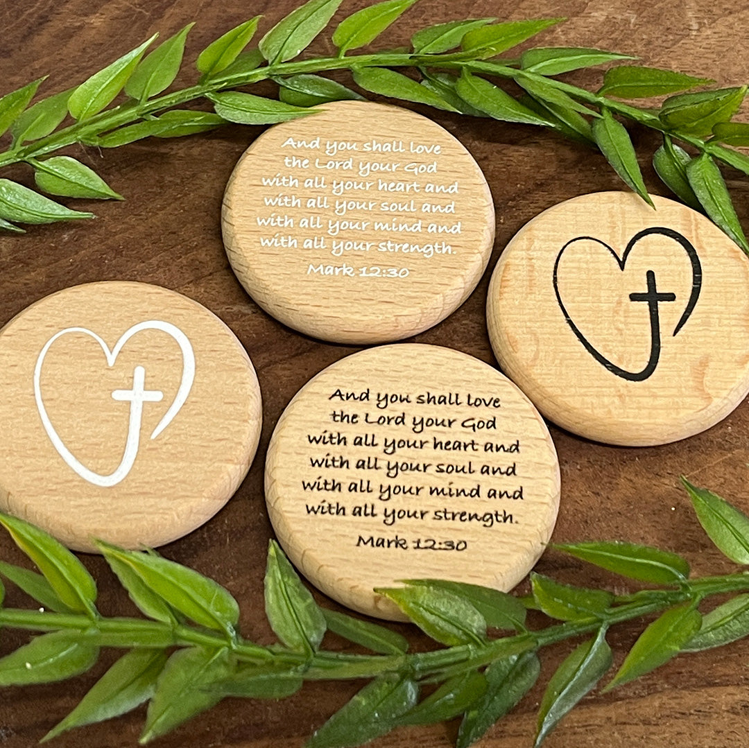 Scripture Verse Wood Coin Tokens - And you shall... Mark 12:30