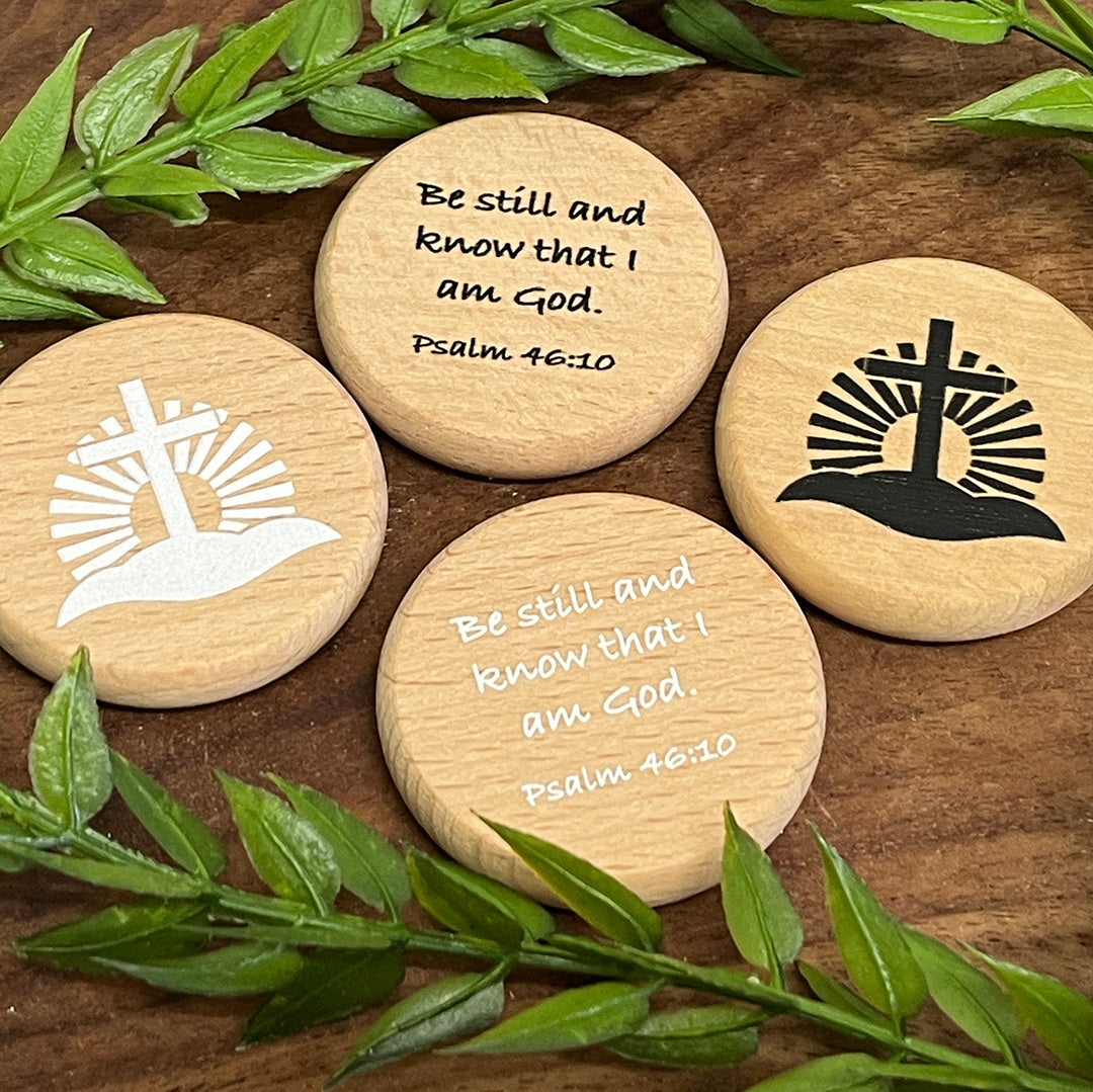 Scripture Verse Wood Coin Tokens - Be still and know... Psalm 46:10