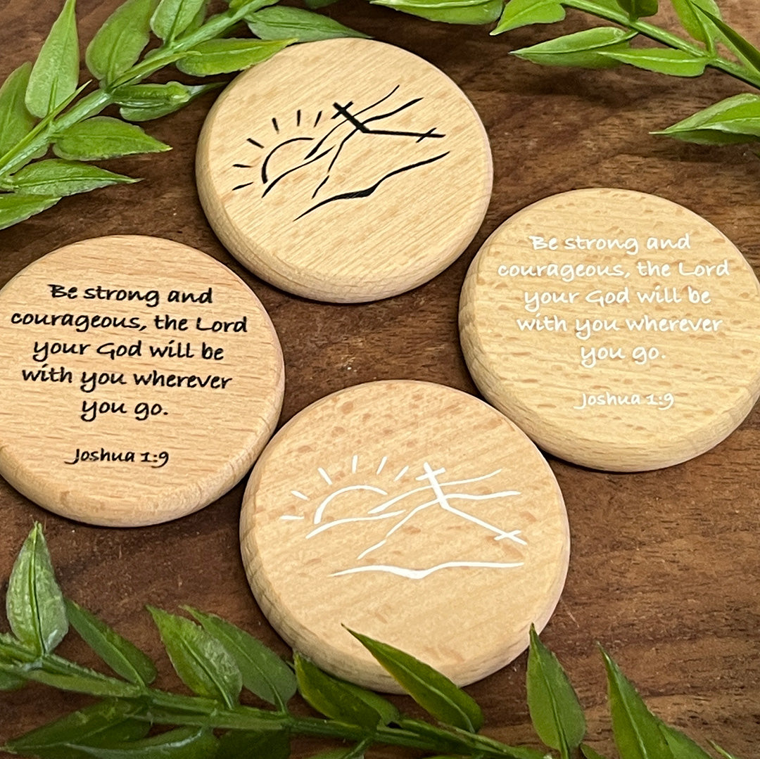 Scripture Verse Wood Coin Tokens - Be strong and courageous... Joshua 1:9
