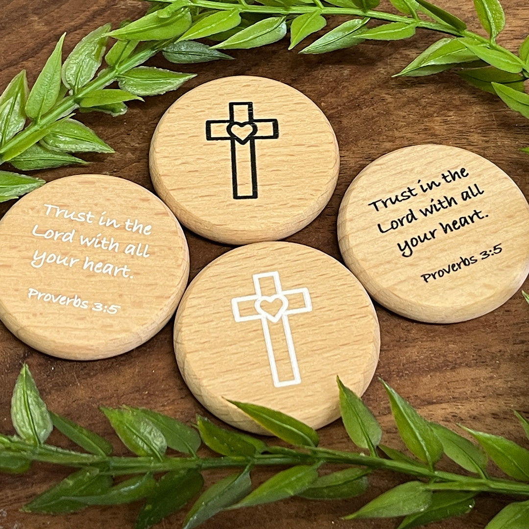 Scripture Verse Wood Coin Tokens - Trust in the Lord... Proverbs 3:5